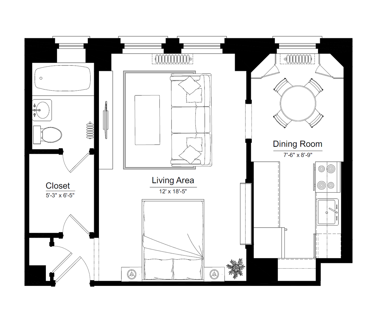 Rehabbed Studio Unit