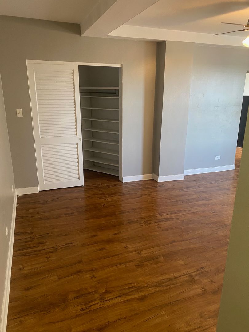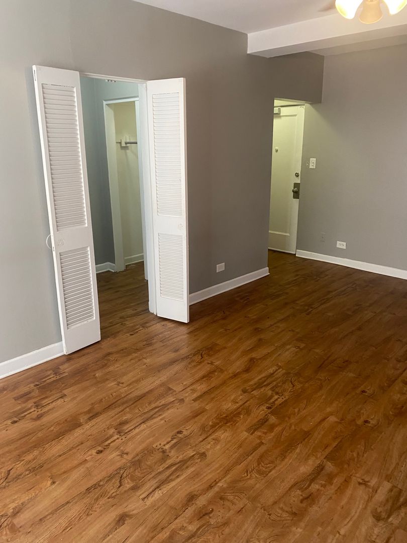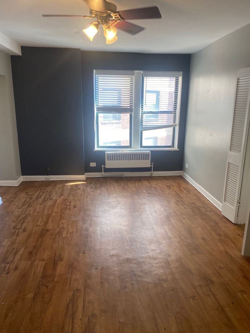 Spacious 470sqft studio apartment available for rent in secure elevator building with amenities. Contact Chris for showings 773-541-1451